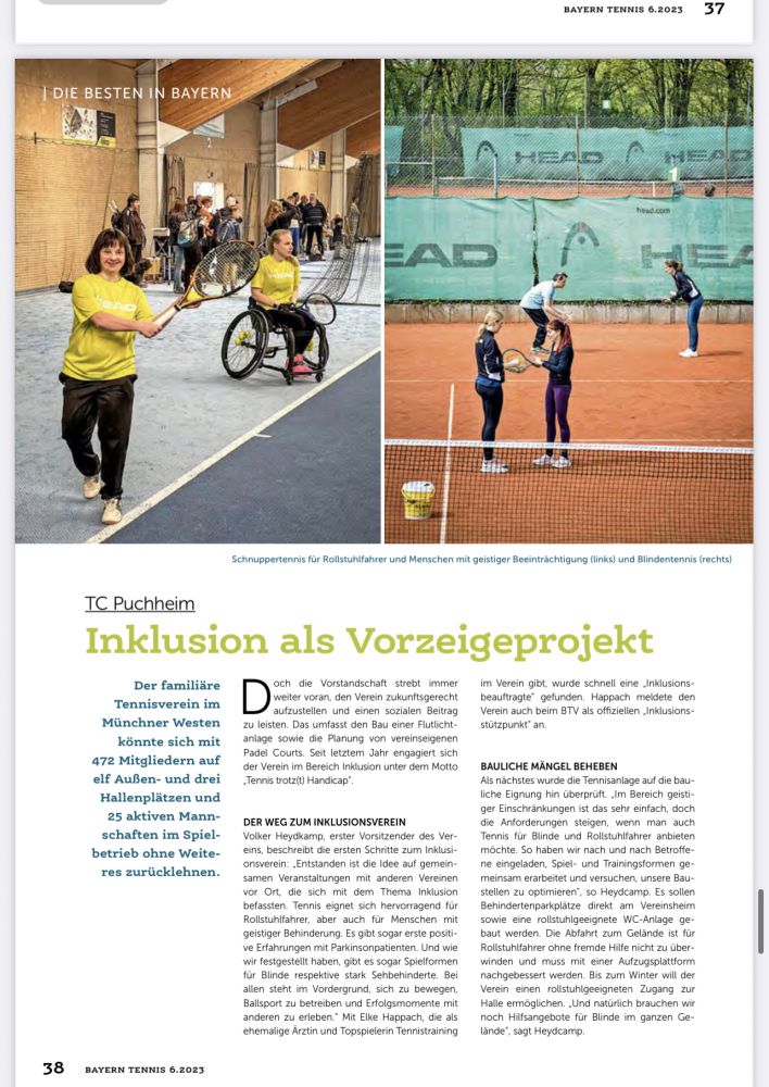 Informationen vom Bayrischen Tennis Verband über unsere Inklusions Aktivitäten, hier unser Tag der offenen Tür zu diesem Thema im April 2023.